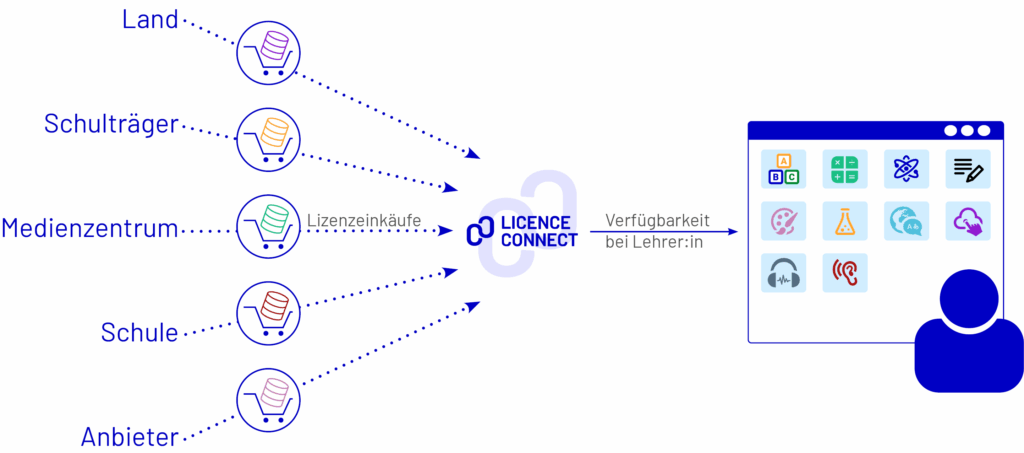 Schulen, Schulträger, Medienzentren und Länder lizenzieren digitale Bildungsangebote auf verschiedene Arten. Licence Connect vereinfacht die Handhabung dieser Lizenzen, indem es verschiedene Lizenzsysteme verbindet.